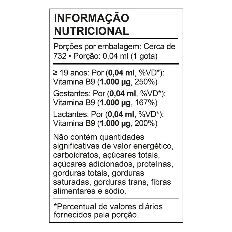 Vitamina B9 na forma ativa — 1000µg por gota.